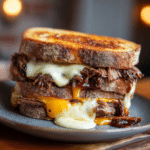 This Brisket Sandwich on Toasted Cheese Sourdough is a bold, deeply satisfying meal that brings together slow-cooked comfort and indulgent texture. Tender, flavorful brisket is paired with golden, crisp sourdough bread layered with melted cheese, creating a sandwich that feels both rustic and refined. I developed this recipe while looking for a way to transform leftover brisket into something truly special, and the result was far more memorable than a standard reheated sandwich. The toasted cheese sourdough adds crunch and richness, while the brisket remains juicy and savory, making every bite balanced and substantial. This is the kind of sandwich that works beautifully for a hearty lunch, a relaxed dinner, or even casual entertaining. It feels indulgent without being complicated and delivers the kind of comfort that keeps you coming back for another bite.