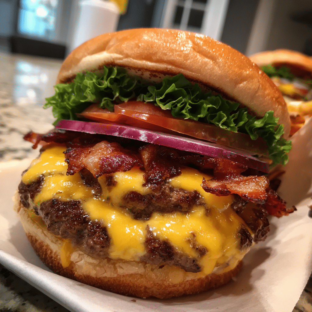 Burgers with Extra Melted Cheese are juicy beef patties grilled or pan-seared and topped with generous layers of perfectly melted cheese for an indulgent, classic burger experience.