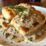 Buttermilk Biscuits with Sausage Gravy is a classic Southern breakfast that’s hearty, creamy, and deeply satisfying. Flaky, buttery biscuits are smothered in rich homemade sausage gravy, making every bite pure comfort food perfection.