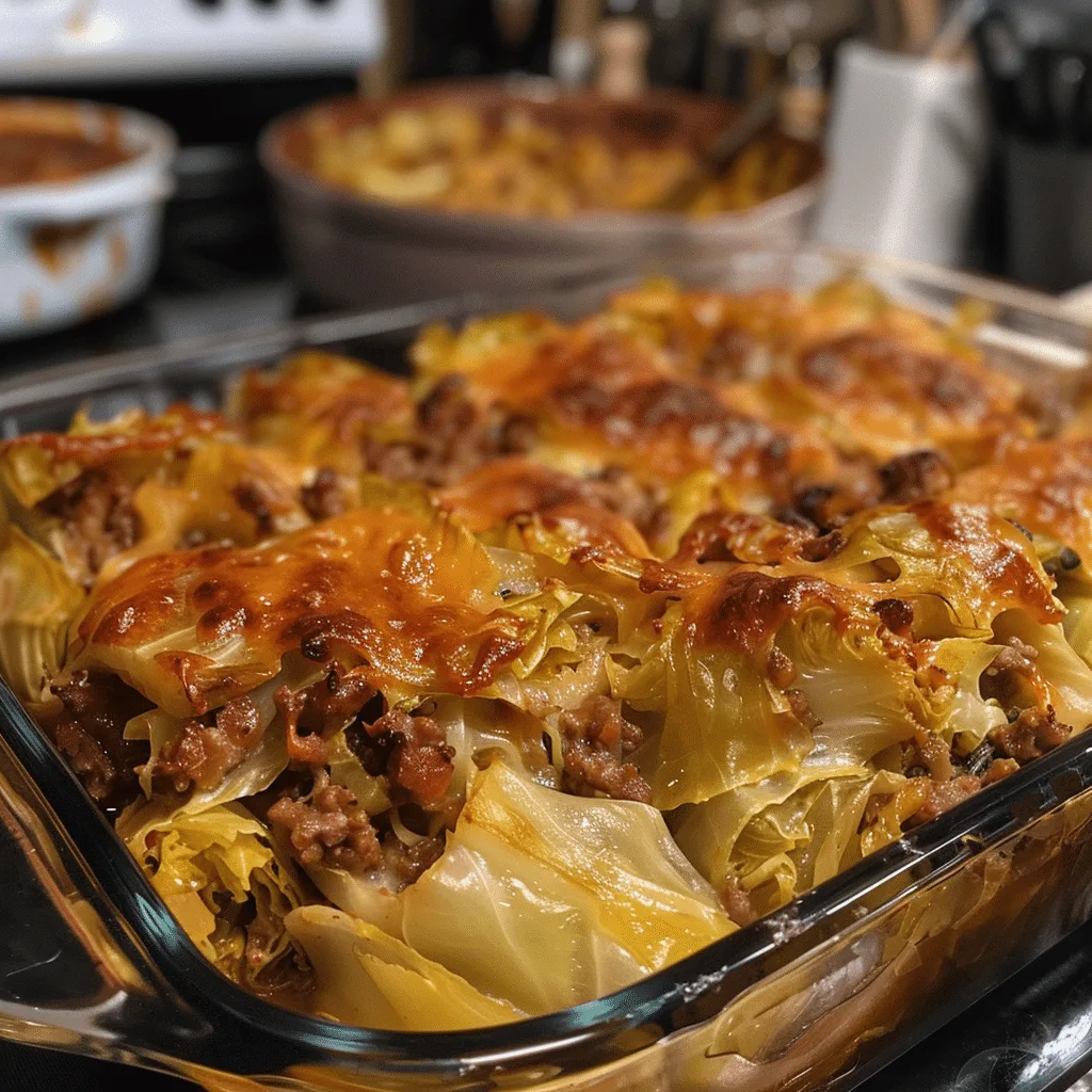 Cover the dish tightly with foil and bake for 40–45 minutes, or until the cabbage is tender and the casserole is bubbling. Remove the foil and bake uncovered for an additional 10 minutes to lightly brown the top.