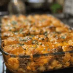 When comfort food cravings hit, nothing satisfies quite like this Cheesy Tater Tot Meatloaf Casserole. It’s everything you love about a traditional meatloaf — juicy, flavorful ground beef and rich tomato glaze — but reimagined with layers of creamy cheese and golden, crispy tater tots on top. The result is a family-style casserole that’s equal parts nostalgic and indulgent. I first made this dish for a cozy weekend dinner, and it instantly became a household favorite. The tater tots add that irresistible crunch while the melted cheese ties everything together. It’s hearty, comforting, and perfect for feeding a hungry crowd — a modern twist on two timeless classics that just works.
