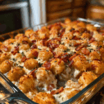 Chicken Bacon Ranch Tater Tot Casserole is the ultimate comfort food — creamy, cheesy, and loaded with crispy tater tots. Featuring tender shredded chicken, smoky bacon, and a rich ranch-flavored sauce, this hearty casserole is perfect for family dinners, potlucks, or cozy weekends.