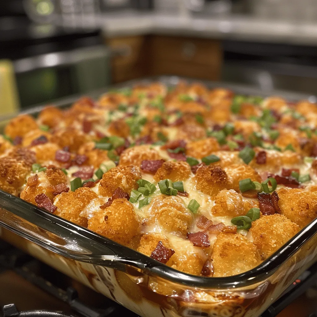Tater Tots: The star topping—crispy, golden, and wonderfully satisfying. They form the perfect crust for the creamy filling beneath.