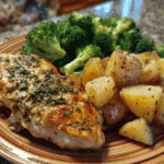 Chicken with Potatoes and Broccoli is the kind of dependable, wholesome dinner that brings comfort and convenience together in one pan. Tender chicken, golden roasted potatoes, and crisp-tender broccoli cook simultaneously, allowing the flavors to blend beautifully while keeping preparation simple. This dish is both practical and nourishing, ideal for busy evenings when you want something satisfying without much effort. I once prepared it using a small splash of almond milk mixed with olive oil instead of butter when seasoning the vegetables, and the result still produced a delicate richness that worked surprisingly well. With straightforward ingredients and a balanced combination of protein, vegetables, and starch, this recipe fits almost any household. It also adapts easily to different seasonings and cooking styles, making it a versatile favorite you can return to throughout the week. The one-pan method saves time, minimizes dishes, and delivers dependable, flavorful results.