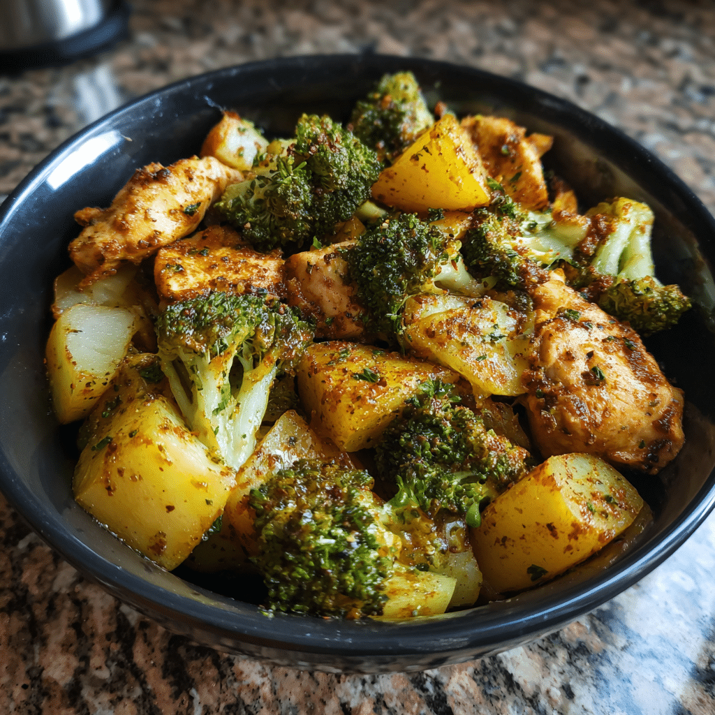 An easy, wholesome sheet-pan style meal featuring seasoned chicken, tender roasted potatoes, and crisp broccoli for a complete balanced dinner.