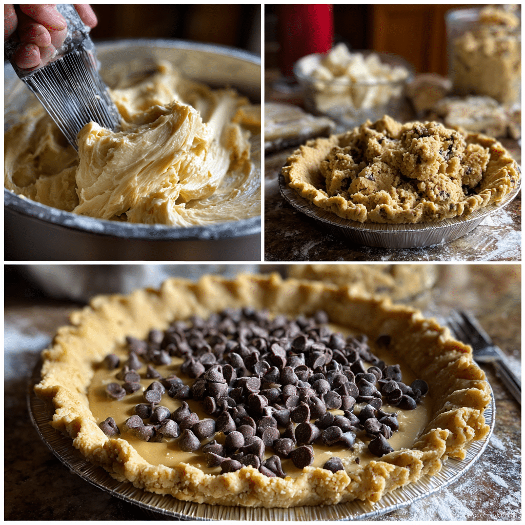 - Press the cookie dough mixture evenly into the prepared pie crust.
