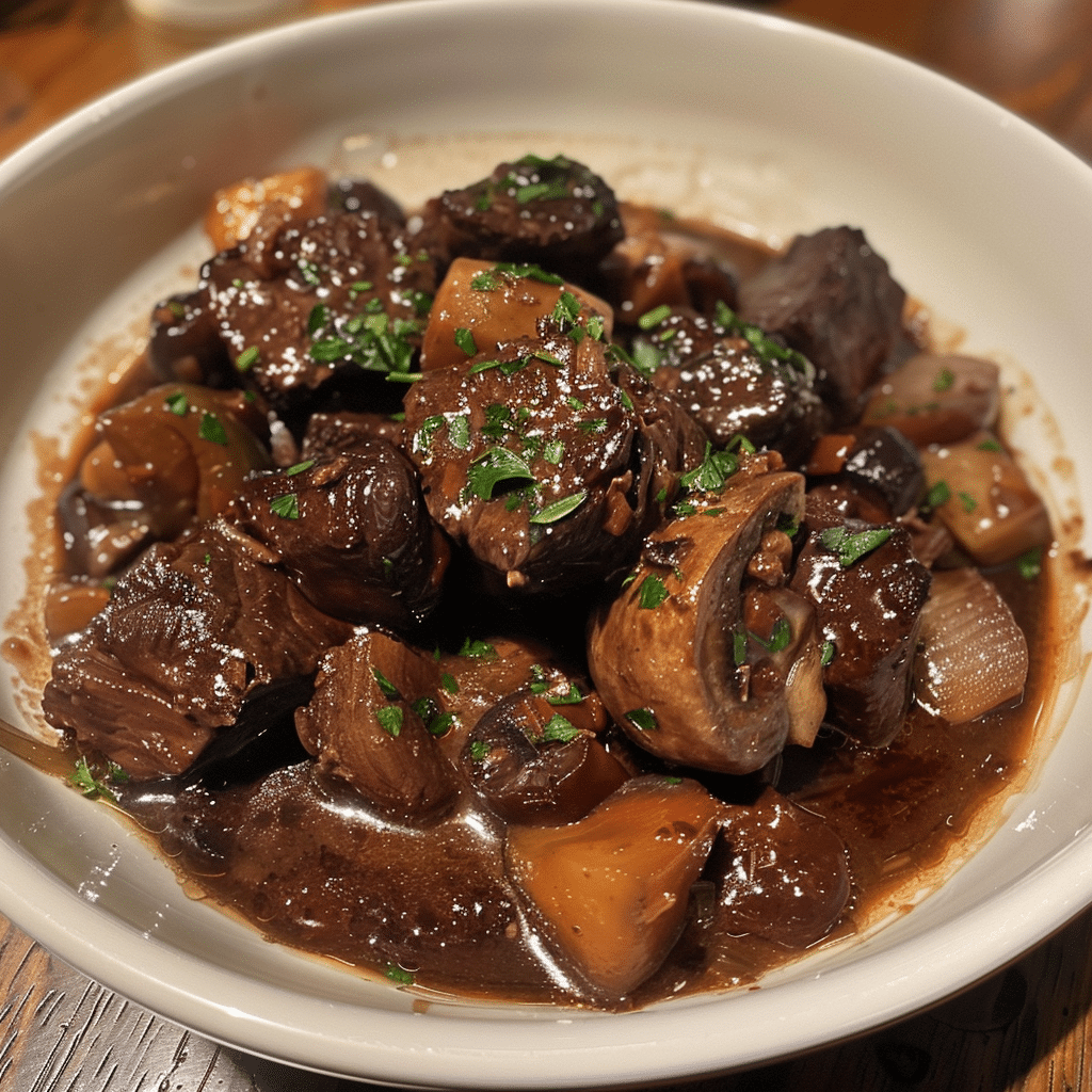 Classic Beef Bourguignon is a rich and hearty French stew made with tender chunks of beef slow-cooked in red wine and beef broth, infused with bacon, garlic, onions, carrots, and herbs. It’s a comforting and elegant dish perfect for special occasions or cozy nights in.