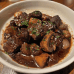 Classic Beef Bourguignon is one of those timeless dishes that perfectly balances rustic comfort with refined flavor. Originating from the Burgundy region of France, this rich stew combines tender beef, smoky bacon, earthy mushrooms, sweet carrots, and pearl onions, all simmered in a luxurious red wine sauce. It’s a dish that warms both the heart and soul—perfect for a cozy dinner or an impressive weekend meal. I first made this on a cold Sunday afternoon, letting it slow-cook while the aroma filled my kitchen. When I finally sat down to eat, the melt-in-your-mouth beef and deep, velvety sauce made every moment worth it. Though it may seem sophisticated, this dish is surprisingly simple to make and delivers restaurant-level flavor right at home.