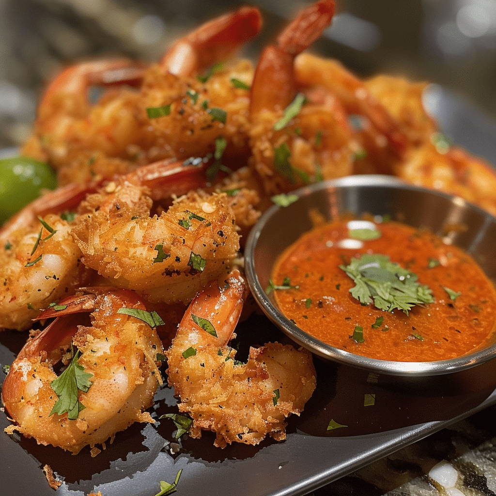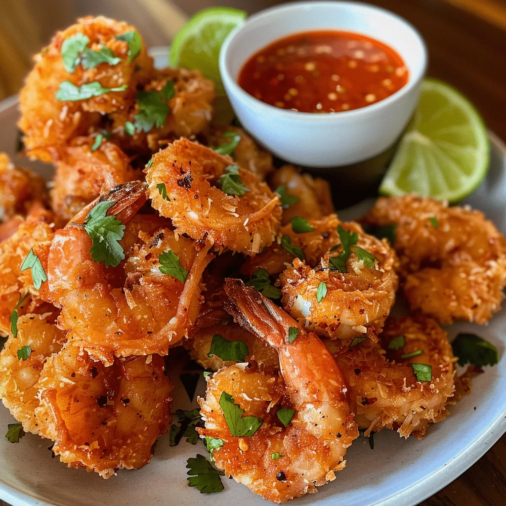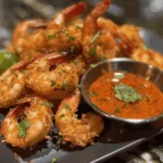 Coconut Shrimp with Lime Chili Dip is a crispy, golden-fried appetizer featuring tender shrimp coated in a sweet coconut crust, paired with a zesty, creamy lime-chili dipping sauce. It’s tropical, crunchy, and bursting with flavor — perfect for parties, date nights, or a beach-inspired meal.