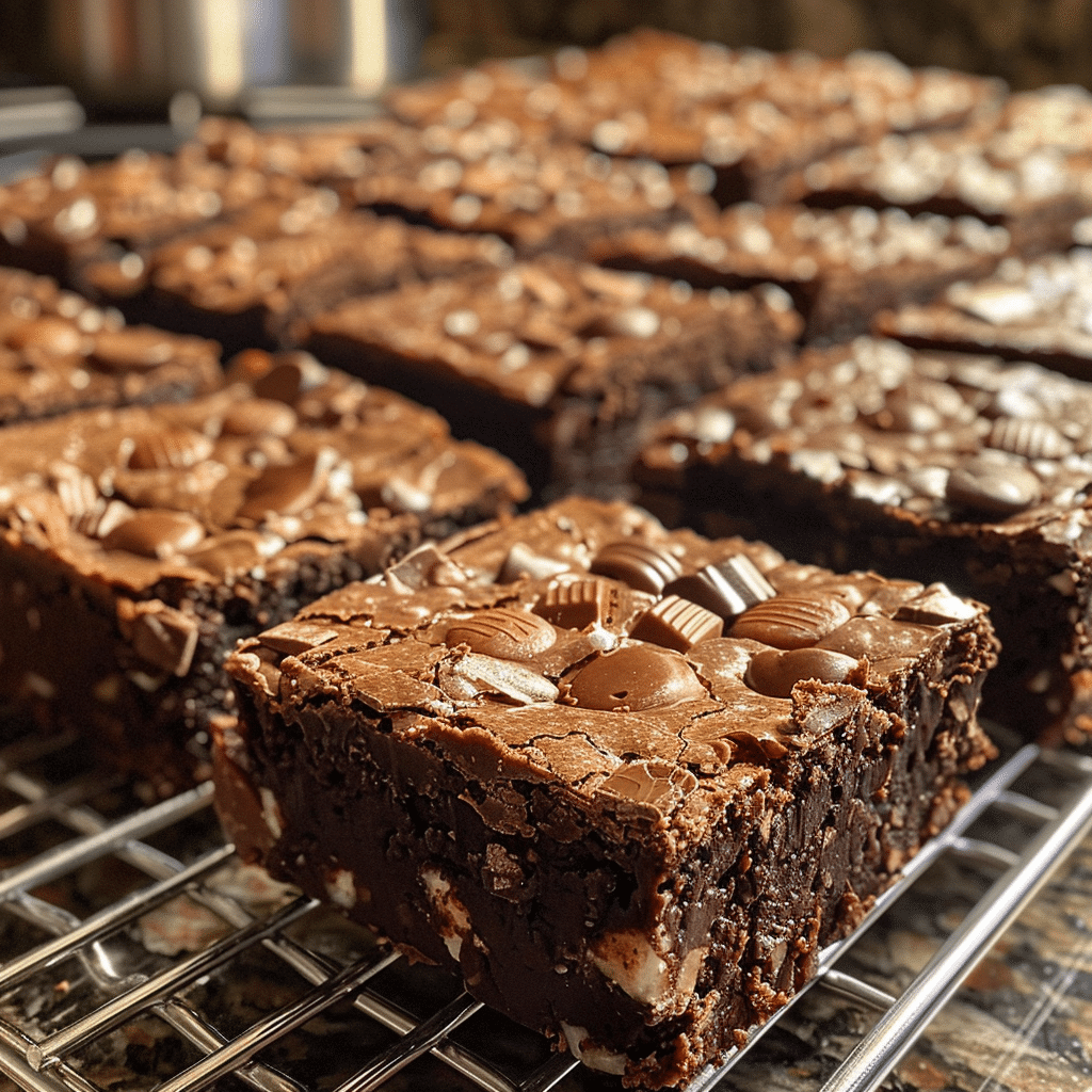 Begin by preparing the brownie base. Melt the butter gently and whisk it together with granulated sugar until fully combined. Add the eggs one at a time, followed by the vanilla extract. Stir in the cocoa powder, flour, and salt until the batter becomes thick and glossy. Fold in a handful of chocolate chips, then portion the batter into a greased mini muffin tin, filling each cavity about two-thirds full. Bake at 350°F (175°C) for 10–12 minutes, or until the tops are set but the centres remain slightly soft. Allow the brownies to cool completely in the tin before removing.