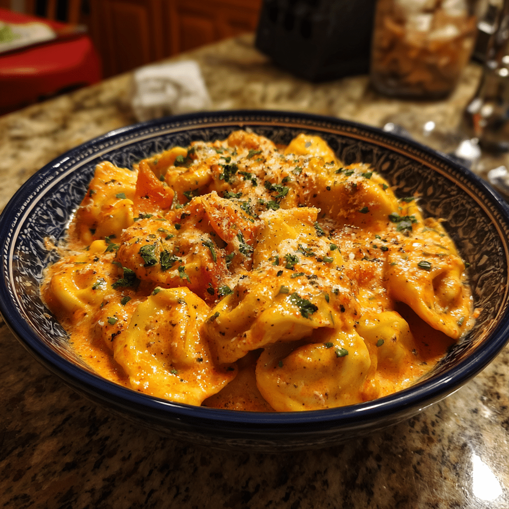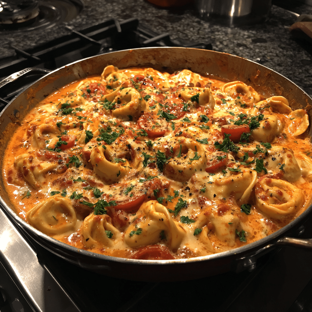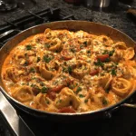 Cozy Fireside Creamy Tomato Tortellini is a warm, comforting pasta dish featuring cheese-filled tortellini simmered in a rich, creamy tomato sauce with herbs — perfect for chilly nights by the fire.