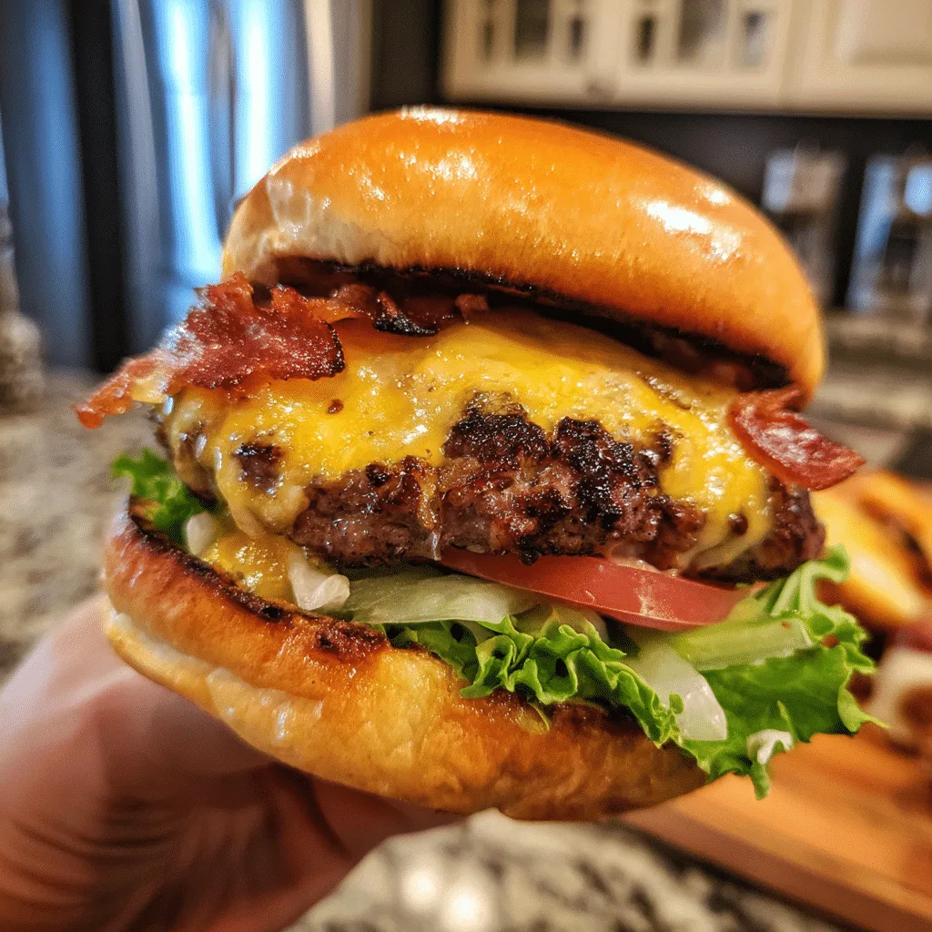 Juicy and flavorful burgers loaded with cheddar cheese, crispy bacon, and ranch seasoning, known as ‘Crack Burgers’ for their irresistible taste.