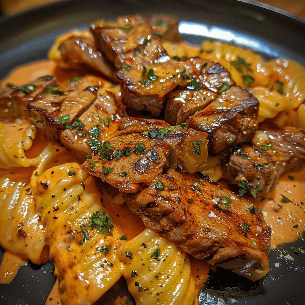Yes, you can! Cook the steak and make the sauce up to a day in advance. Store them separately in airtight containers in the fridge. When you’re ready to serve, cook the pasta fresh, reheat the sauce and steak gently, then mix everything together. This keeps the pasta from turning mushy.