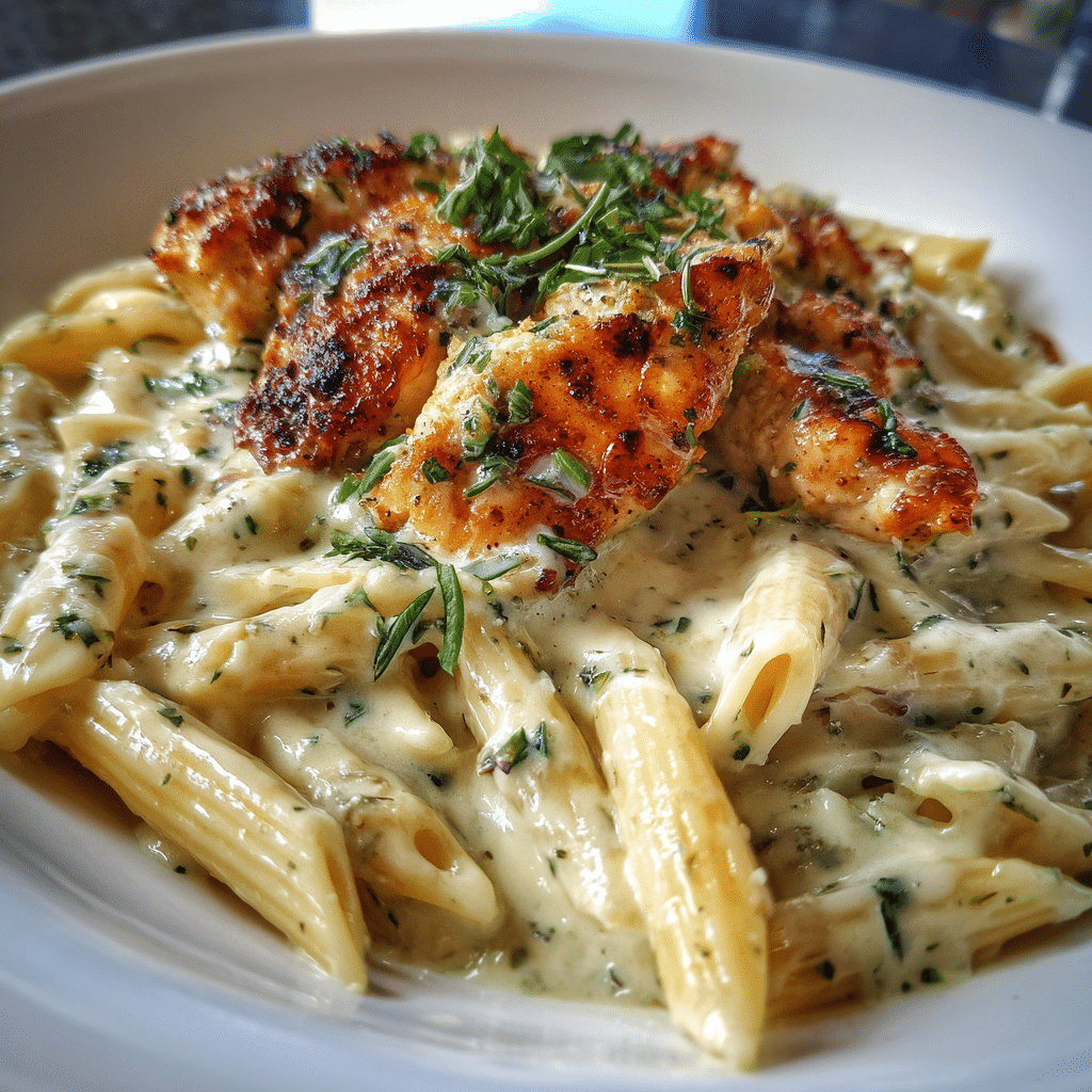 A creamy and flavorful pasta dish with tender chicken, penne pasta, and a rich Parmesan herb sauce. A comforting and satisfying meal perfect for weeknights.