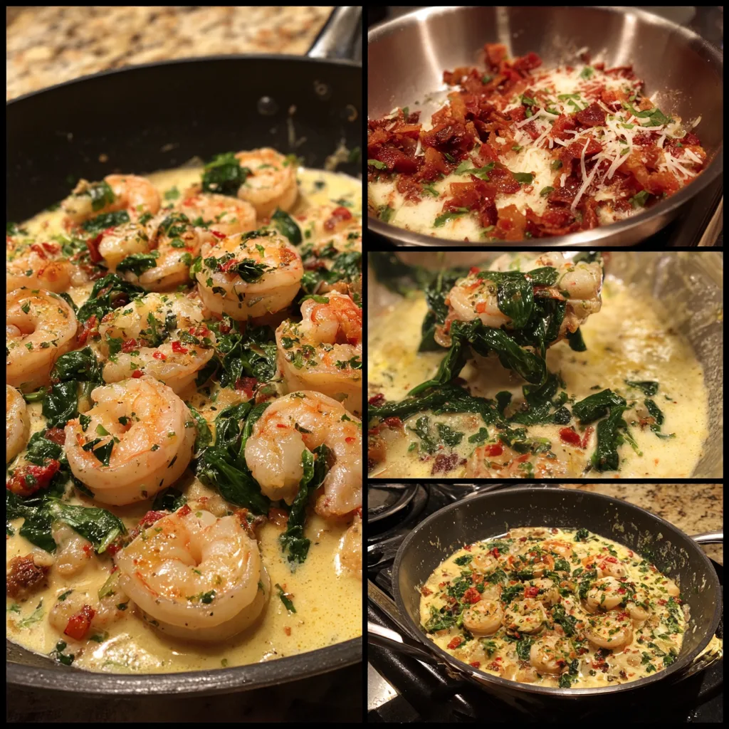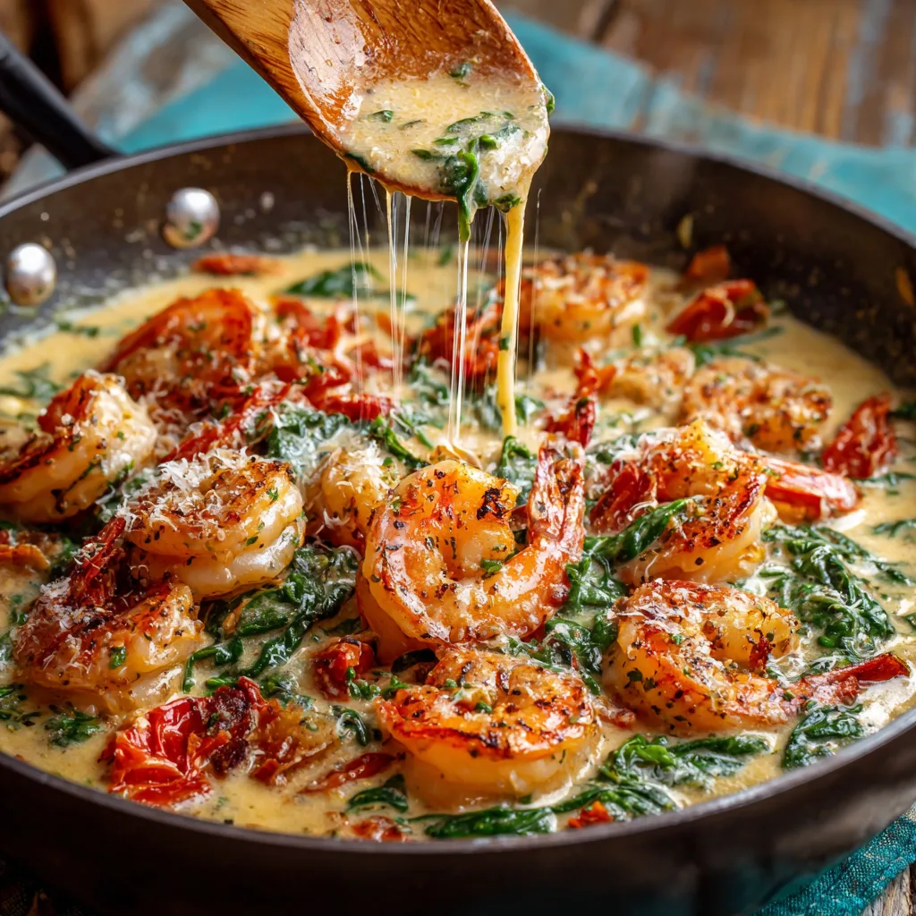 A rich and flavorful creamy Tuscan shrimp dish featuring juicy shrimp in a garlic Parmesan sauce with sun-dried tomatoes and spinach, better than any restaurant version.