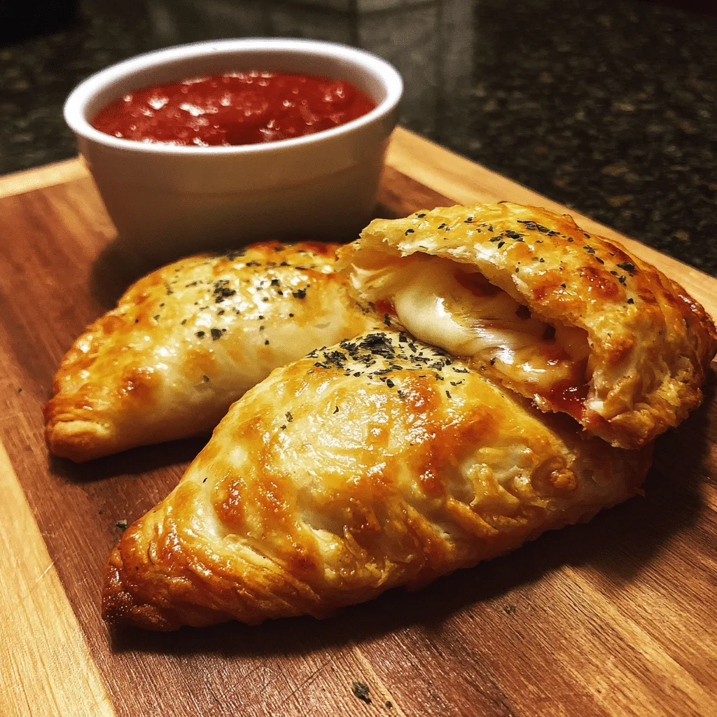 Soft, golden pizza pockets filled with gooey cheese and savory pizza toppings, perfect for a quick homemade snack or dinner.