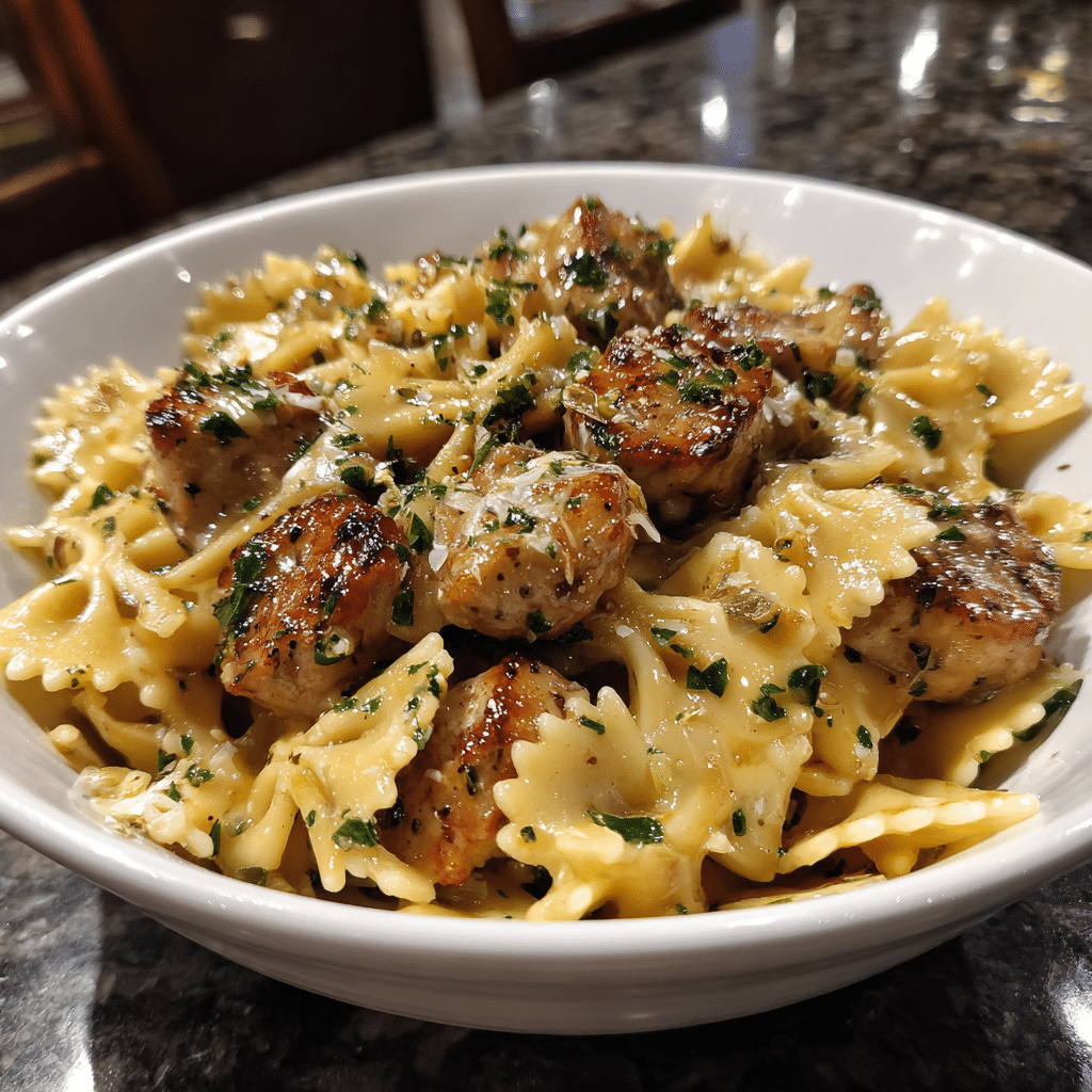 A simple and flavorful pasta dish made with Italian chicken sausage, tender bow tie pasta, and a creamy tomato-herb sauce for an easy weeknight dinner.