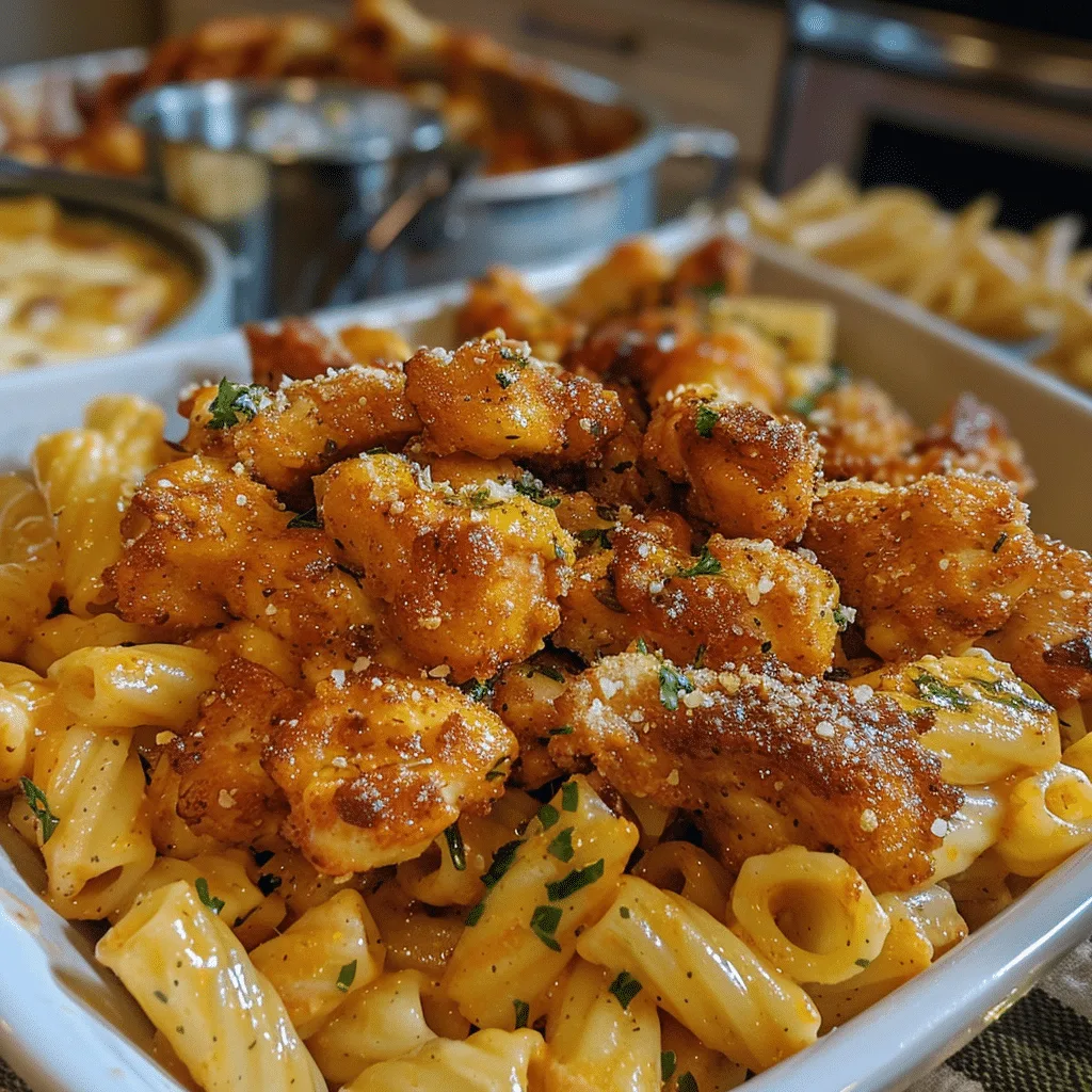 - Combine: Add the cooked pasta to the skillet, tossing until well coated. Add the chicken bites back in and toss everything together until heated through.
