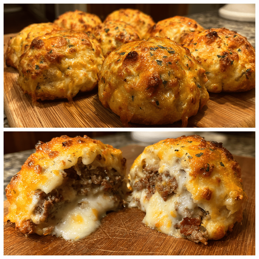 Garlic Parmesan Cheeseburger Bombs are the ultimate fusion of burger comfort and buttery, pull-apart perfection. Crispy on the outside, cheesy and juicy on the inside, they’re a guaranteed hit for any occasion. Whether you serve them as an appetizer, snack, or playful dinner, they deliver everything you love about a cheeseburger—wrapped in golden, garlicky goodness that will have everyone coming back for seconds.