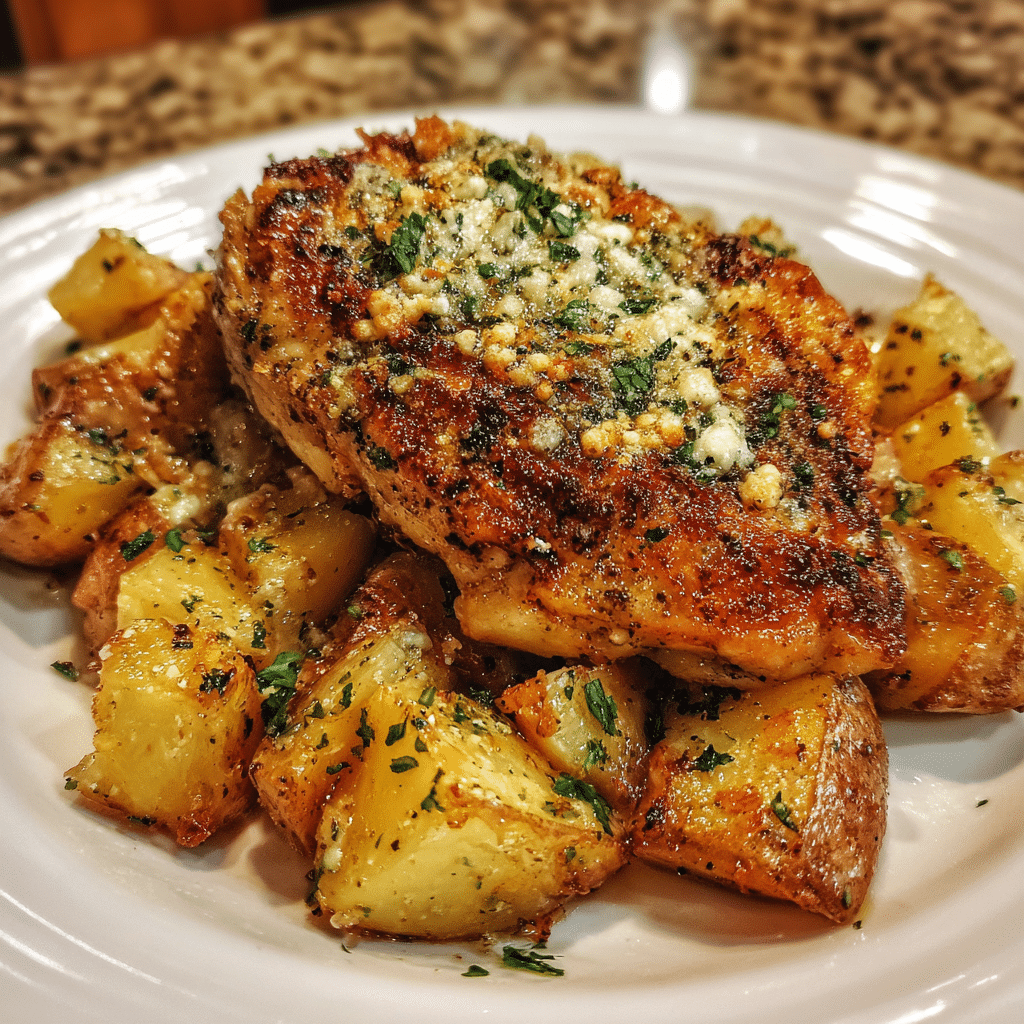 Garlic Parmesan Chicken and Potatoes is a flavorful one-pan meal made with juicy chicken, crispy potatoes, and a savory garlic-parmesan seasoning. Perfect for busy weeknights or family dinners.
