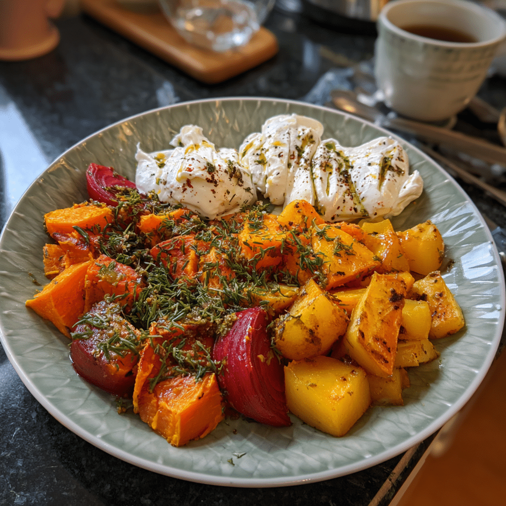 This dish is beautifully simple yet sophisticated, relying on roasted vegetables and creamy burrata for a comforting, flavorful combination. It is versatile, nutritious, and ideal for showcasing seasonal produce with minimal effort.