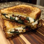 This Sun-Dried Tomato, Spinach, and Ricotta Grilled Cheese takes the classic comfort sandwich and elevates it to gourmet status. Creamy ricotta melts beautifully between crisp, golden slices of bread, while sun-dried tomatoes add tangy sweetness and spinach provides a fresh, earthy balance. Every bite offers a perfect blend of creamy, crunchy, and savory. I once tried this sandwich with a drizzle of balsamic glaze on the inside — and it added just the right amount of brightness. Whether for lunch, a cozy dinner, or a quick weekend bite, this grilled cheese is simple yet full of flavor and sophistication.