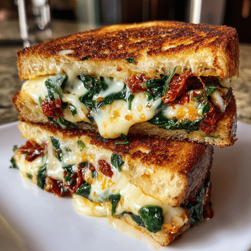 This Sun-Dried Tomato, Spinach, and Ricotta Grilled Cheese is a gourmet twist on the classic comfort sandwich. Creamy ricotta, tangy sun-dried tomatoes, and fresh spinach are layered between golden, buttery bread slices and grilled until perfectly crisp and melty — ideal for lunch or a light dinner.