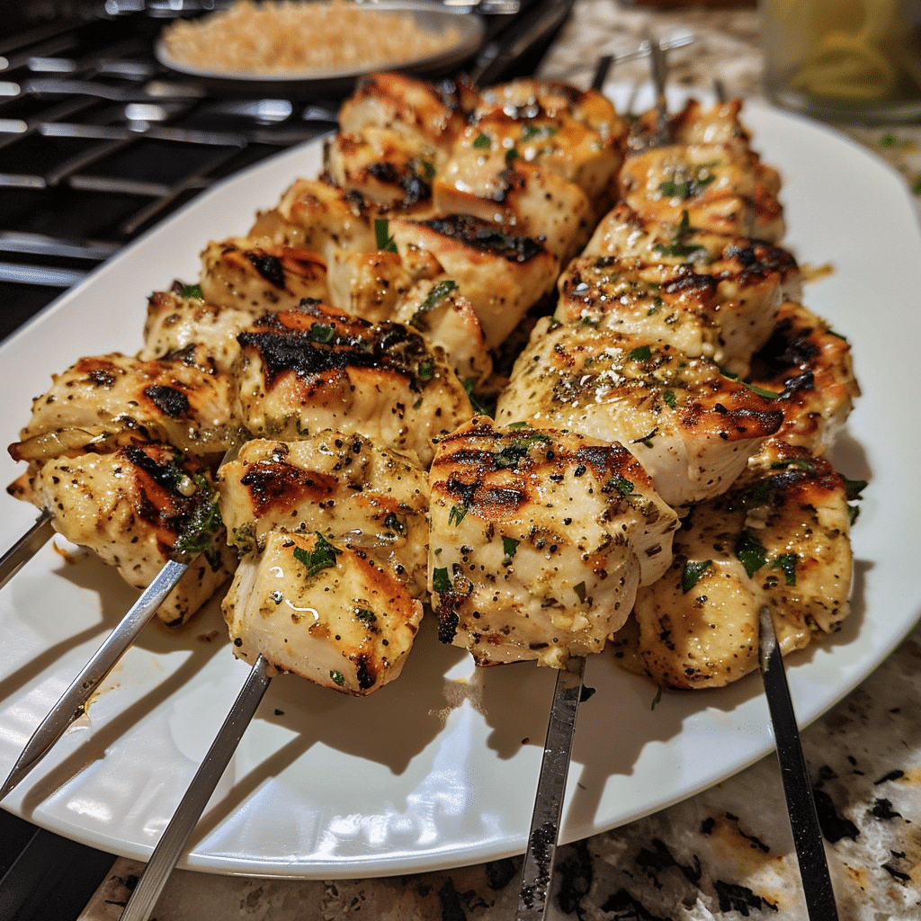 Juicy chicken skewers marinated in ranch seasoning, garlic, and Parmesan cheese, then grilled to perfection for a flavorful and easy main dish.