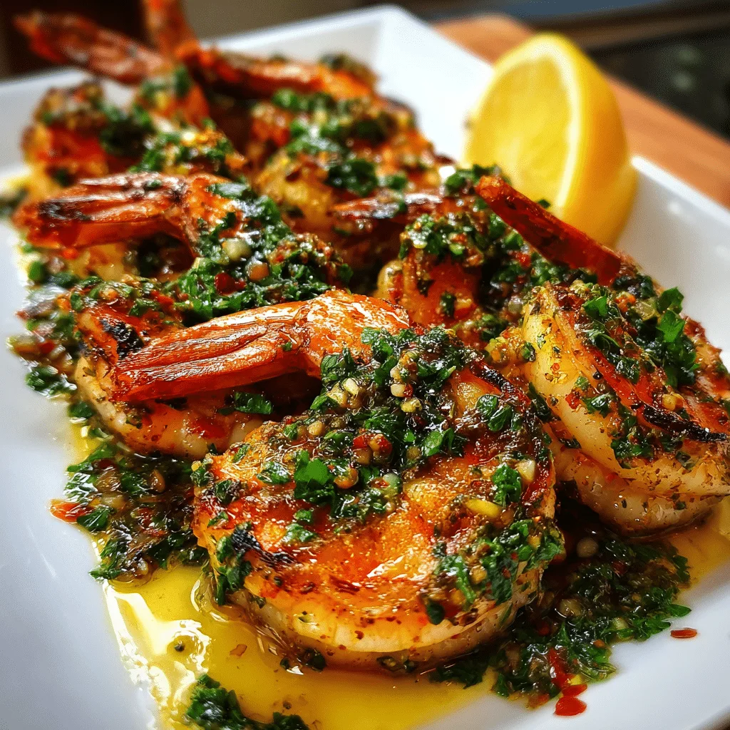 This recipe is highly adaptable. You can substitute shrimp with scallops or grilled chicken while using the same chimichurri sauce. I tested the sauce with extra lemon zest added, which gave it a brighter finish. For a milder version, reduce the red pepper flakes. You can also add fresh mint or basil to the chimichurri for a different herbal profile. Serving the shrimp over rice, quinoa, or grilled vegetables makes it a complete and balanced meal.