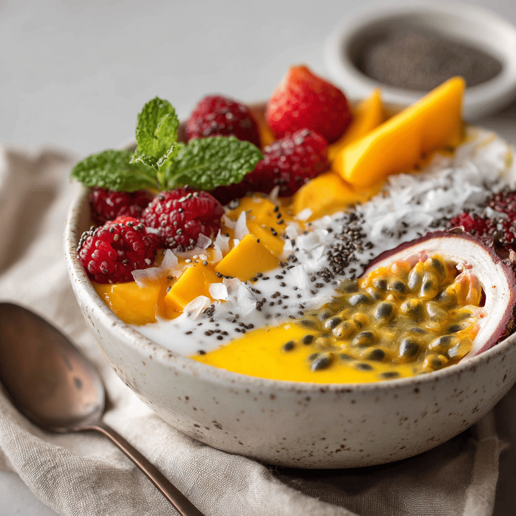 The Mango Passionfruit Chia Yogurt Bowl is highly adaptable and easy to personalize. For a dairy-free version, use coconut or almond-based yogurt, which pairs especially well with the tropical flavors. I have tried this with coconut yogurt, and it added a subtle richness that complemented the fruit beautifully.