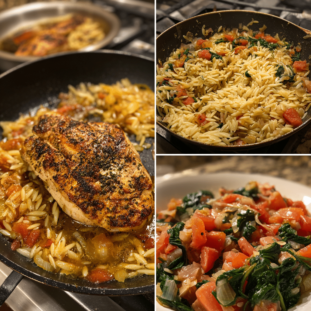 A one-pan Mediterranean-inspired chicken and orzo skillet loaded with juicy chicken, tender orzo pasta, tomatoes, spinach, and tangy feta cheese. Perfect for a quick, healthy weeknight meal bursting with flavor.