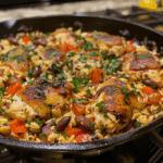 Mediterranean Chicken and Orzo Skillet is the kind of meal that makes weeknight cooking both simple and exciting. It’s hearty, colorful, and full of flavor, yet it only takes one pan to prepare—making cleanup effortless. Tender chicken, nutty orzo, and fresh vegetables come together with Mediterranean-inspired seasonings for a balanced dish that feels wholesome and satisfying. I once swapped the chicken for shrimp, and it was just as delicious, adding a coastal flair to the meal. What I love most is how versatile this dish can be—you can adapt it with seasonal produce or different proteins, and it always works. The orzo absorbs the savory juices from the chicken and aromatics, ensuring every bite is flavorful. Whether you’re cooking for family or hosting friends, this skillet dish is both comforting and impressive.