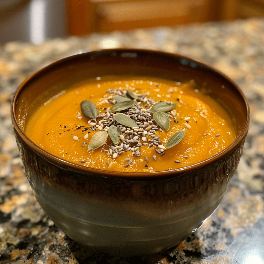 A creamy and comforting roasted pumpkin soup made without peeling the pumpkin, saving time while preserving flavor and nutrients.