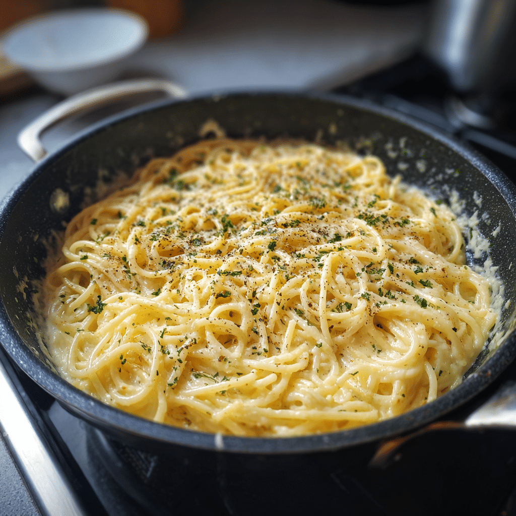 Remove from heat and let the pasta sit for 2–3 minutes to allow the sauce to thicken further. Garnish with fresh parsley before serving. Enjoy as a main dish or pair with grilled chicken, shrimp, or vegetables for a complete meal.