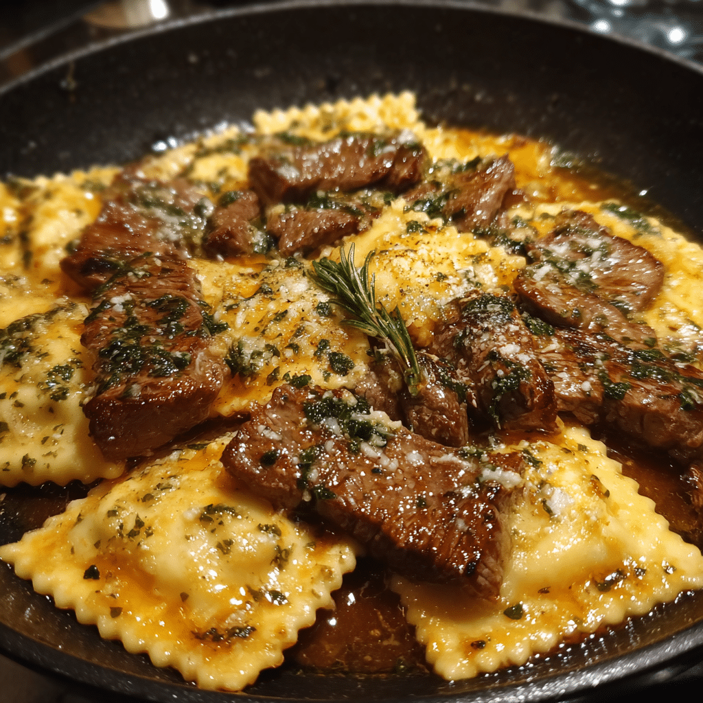 One-Skillet Garlic Butter Steak & Cheese Ravioli