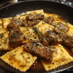 One-Skillet Garlic Butter Steak & Cheese Ravioli is the ultimate comfort food, combining the richness of seared steak bites with the indulgence of cheesy pasta in a garlicky, buttery sauce. Quick, easy, and endlessly customizable, it’s the perfect recipe for when you want something both cozy and impressive. Whether you keep it simple or dress it up with cream, mushrooms, or seafood, this dish will always feel like a gourmet meal made at home.