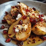 Elegant baked pears topped with creamy feta, sweet honey, and tart cranberries — a simple yet sophisticated dessert or appetizer with a perfect balance of flavors.