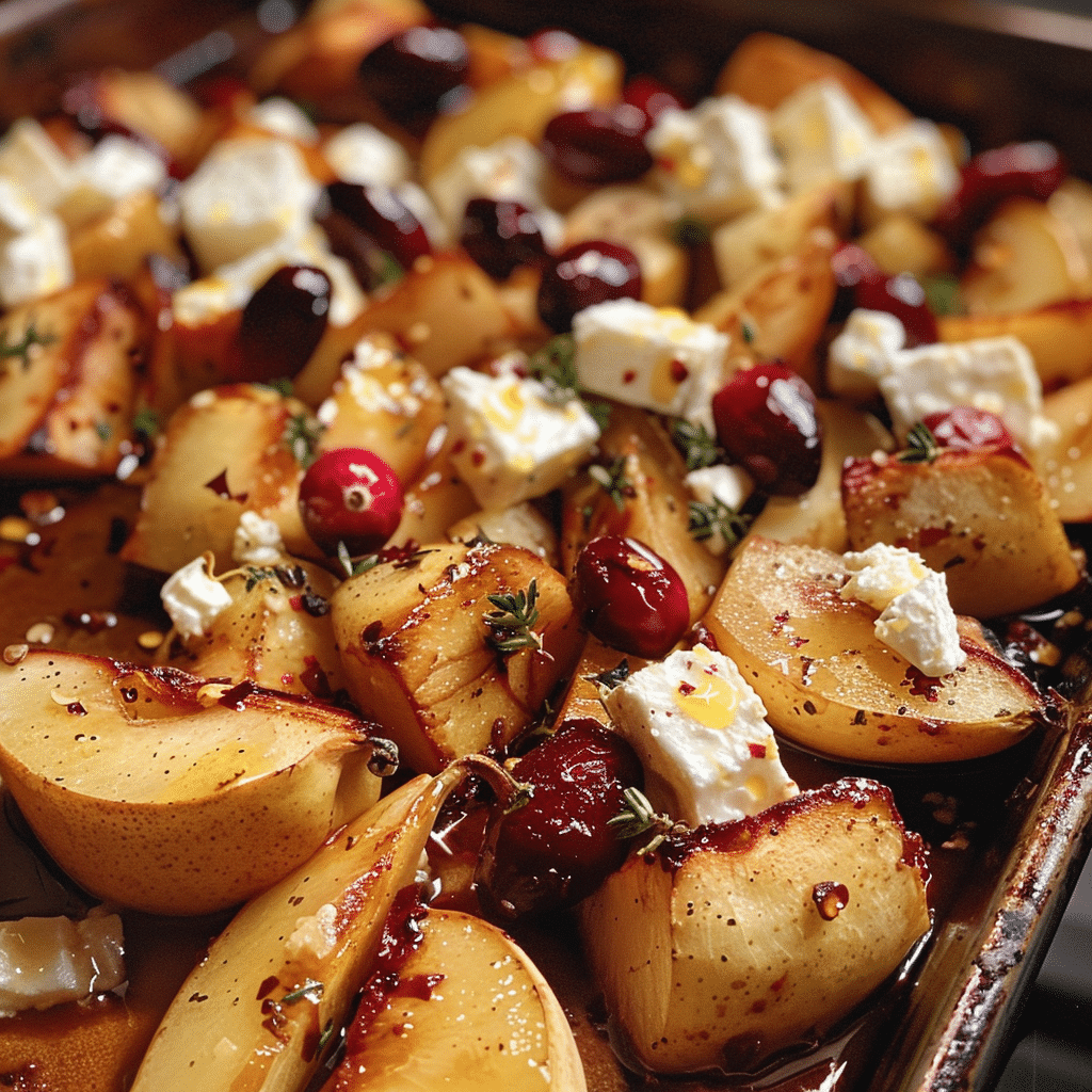 This recipe is a true celebration of seasonal ingredients and simple preparation. The pears bake until they’re soft and aromatic, while the feta melts slightly to create a creamy, tangy balance against the sweetness of the honey. The cranberries add a pop of tartness and color that makes this dish visually stunning. Best of all, it’s versatile — serve it as an elegant starter, a brunch side, or a sophisticated dessert. The contrast of warm pears and cool feta ensures every bite is exciting and perfectly balanced.