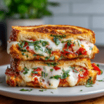 Pizza Grilled Cheese Sandwiches combine the gooey comfort of grilled cheese with classic pizza flavors like marinara sauce, mozzarella, and pepperoni, all toasted to golden perfection.