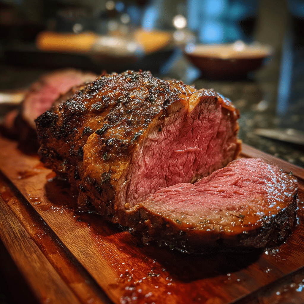 A classic and flavorful roast beef made tender and juicy with simple seasoning, slow-roasted to perfection for an elegant yet comforting main course.
