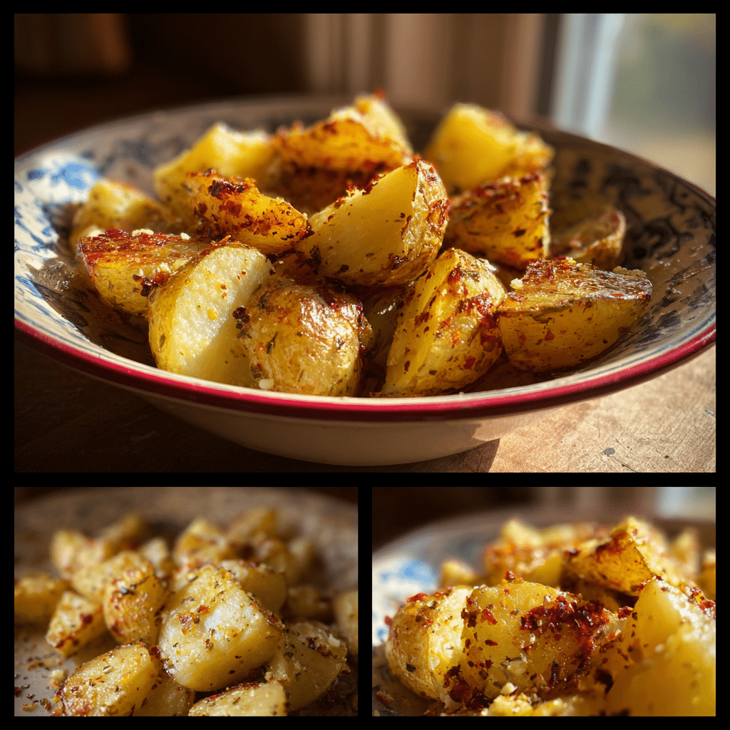 Crispy oven-roasted potatoes tossed in rich garlic butter and finished with savory Parmesan cheese and herbs, making the perfect side dish for any meal.