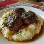 Salisbury Steak Meatballs with Garlic Herb Mashed Potatoes is the perfect fusion of two homestyle favorites: juicy, savory meatballs inspired by classic Salisbury steak, and creamy mashed potatoes infused with garlic and fresh herbs. Together, they create a hearty, comforting meal that’s ideal for family dinners or entertaining guests. The meatballs are simmered in a rich onion and mushroom gravy, while the mashed potatoes provide a silky, buttery base that soaks up every drop of flavor. This dish is satisfying, elegant enough for a special occasion, yet simple enough for a weeknight dinner. If you love meals that deliver both nostalgia and bold flavor, this recipe is bound to become a staple in your kitchen.
