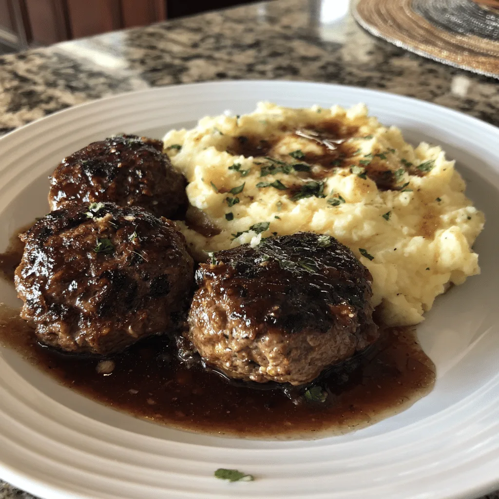 Salisbury Steak Meatballs with Garlic Herb Mashed Potatoes