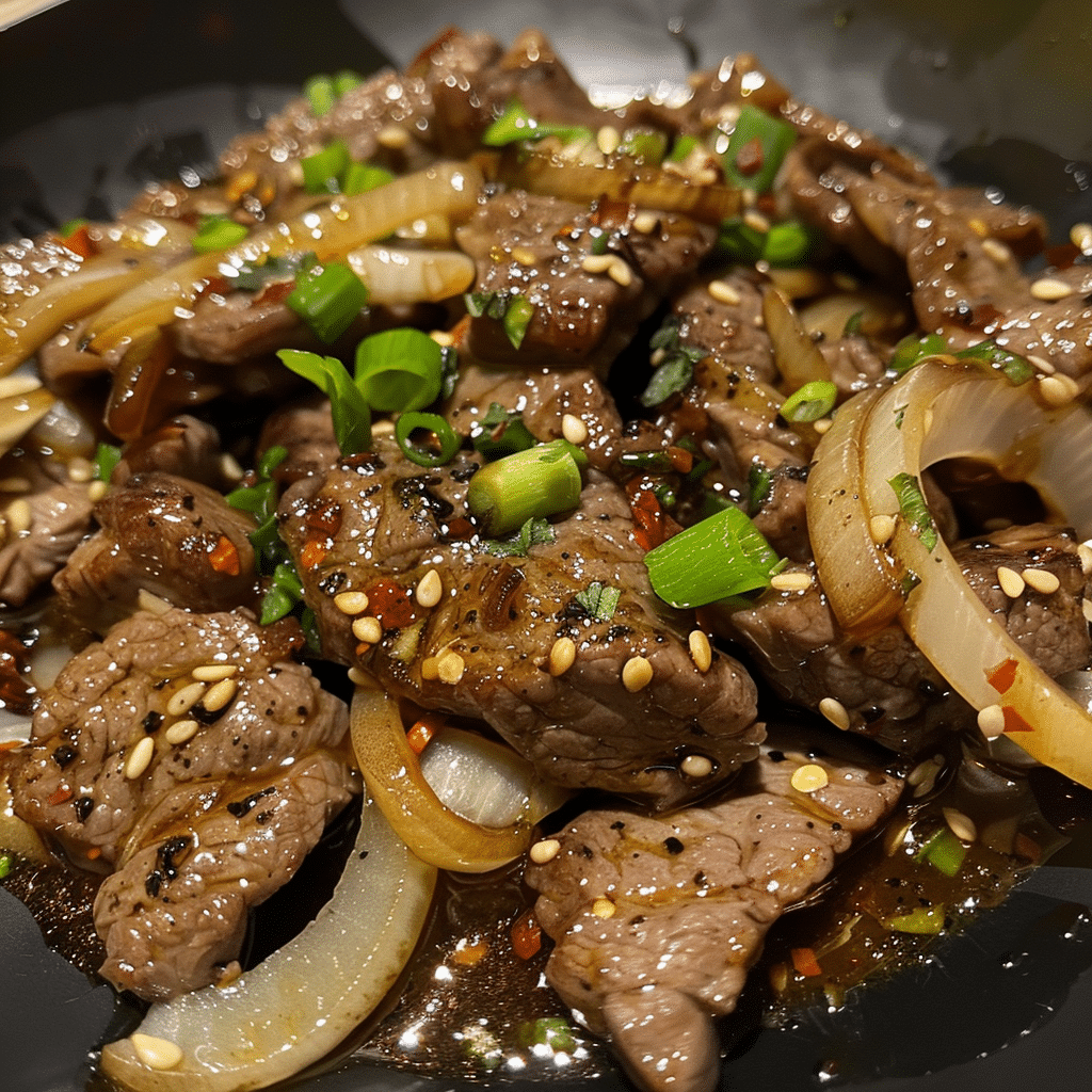 Sizzling Chinese Pepper Steak with Onions is a classic stir-fry dish featuring tender strips of beef cooked with bell peppers and onions in a savory garlic-soy sauce. Bursting with bold umami flavors and a touch of sweetness, this restaurant-style favorite is perfect for quick weeknight dinners.