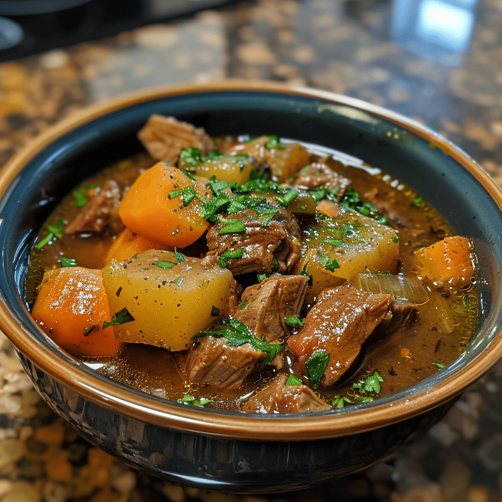 A hearty and comforting slow cooker beef stew made with tender beef, vegetables, and a rich, savory broth. Perfect for a cozy family meal.