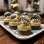 Snow Globe Cheesecake Bites with Cookie Crust are the kind of dessert that instantly captures attention before anyone even takes a bite. I first made these for a winter gathering when I wanted something festive but still practical to serve, and they exceeded every expectation. Each bite combines a crisp cookie crust, a smooth and creamy cheesecake layer, and a whimsical snow globe effect that feels special without being complicated. What makes this recipe particularly appealing is its balance. The sweetness is controlled, the texture is luxurious, and the presentation feels bakery-worthy even when made at home. These cheesecake bites are portioned perfectly, making them easy to serve and enjoy without the need for slicing. They are ideal for holidays, dessert tables, or themed parties, and they can be prepared ahead of time, which I always appreciate when hosting.