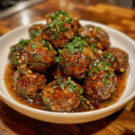 Tender, juicy meatballs coated in a sticky, sweet, and spicy honey garlic glaze — the perfect appetizer or main dish that’s bursting with bold, irresistible flavor.