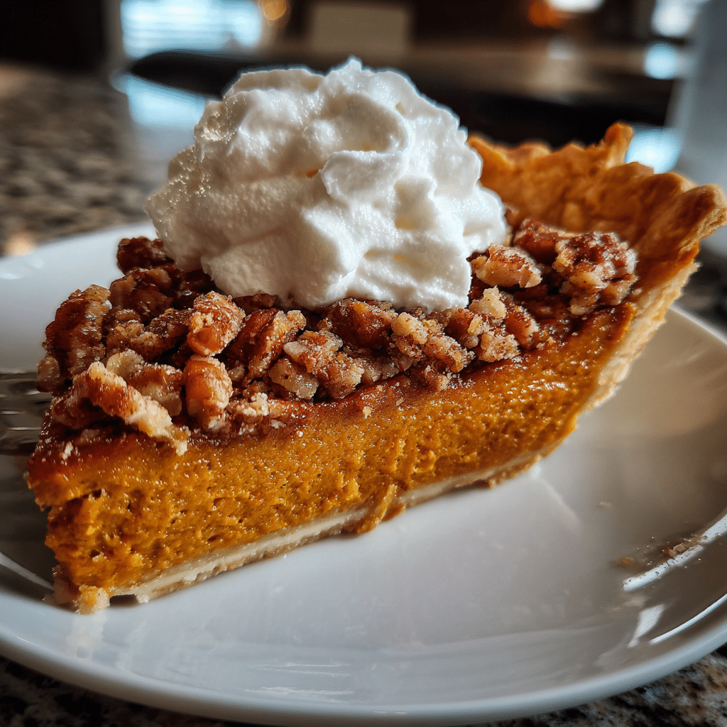 Store covered in the refrigerator for up to 4 days. Serve chilled or at room temperature. To reheat, warm slices in the oven at 300°F (150°C) for 10 minutes. The pie can also be frozen (without the topping) for up to 2 months—add the praline layer after thawing and reheat gently.