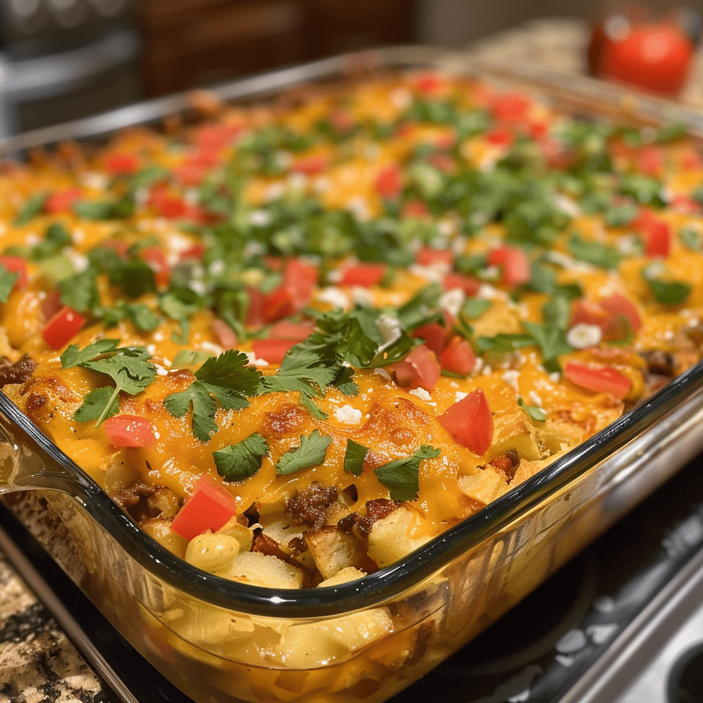Taco potato casserole is a hearty and comforting dish that combines the bold flavors of seasoned ground beef, tender potatoes, melted cheese, and classic taco toppings. It is the perfect fusion of Tex-Mex and comfort food, offering a satisfying balance of creamy, cheesy richness and spicy taco goodness. This casserole is not only filling but also incredibly versatile, making it ideal for busy weeknights, potlucks, or family dinners. One of the best things about this recipe is its flexibility—you can adjust the spice level, swap proteins, or add vegetables to suit your preferences. Plus, it is easy to prepare ahead of time and bakes beautifully, giving you a golden, bubbly casserole that everyone will love. If you are looking for a budget-friendly meal that feeds a crowd and guarantees clean plates, this taco potato casserole will quickly become one of your go-to recipes.
